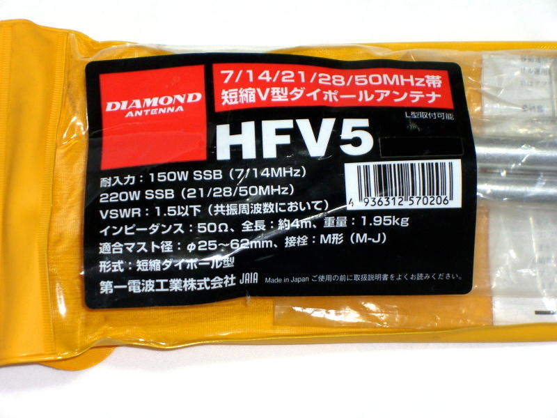 第一電波 7/14/21/28/50MHz帯 短縮V型ダイポールアンテナ